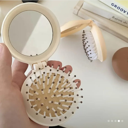 1 Pc Compact Hairbrush, foldable with built-in mirror. Scalp massage comb, easy to carry
