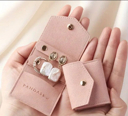 1 Pc Portable jewelry roll bag with snap closure, multiple compartments, earrings, rings, necklaces