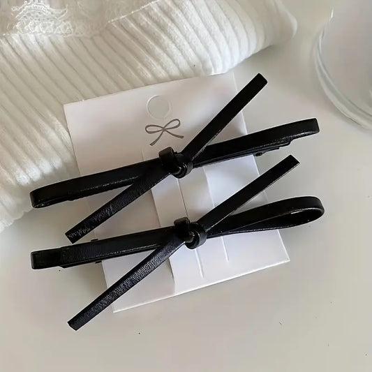 2 PCS Chic PU Leather Bow Hair Clips, Ponytail Holders, Cute Style, Alligator Clips