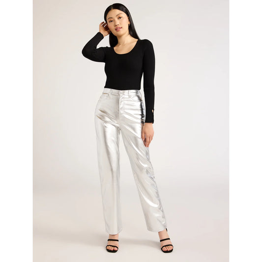 Jessica Simpson Women's Eden Straight Super High Rise Faux Leather Pants, 30.5" Inseam