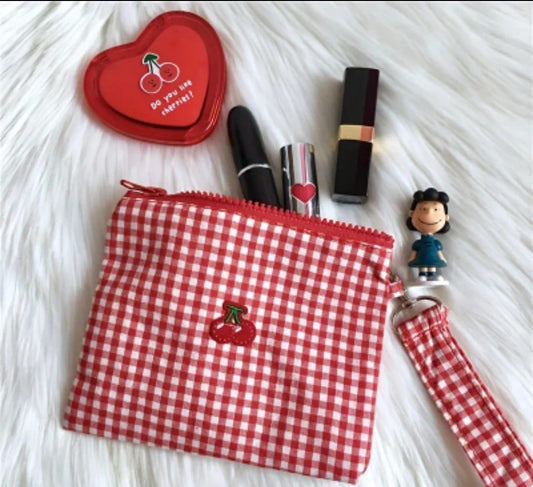 Cherry Embroidered Canvas Multifunctional Portable Makeup Bag Purse