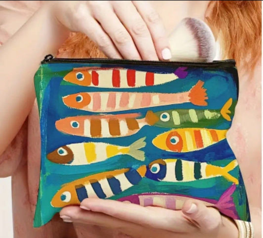 Mini Fishes Can Cosmetic Bag, Blue Harbor, Retro Canvas Zippered Case