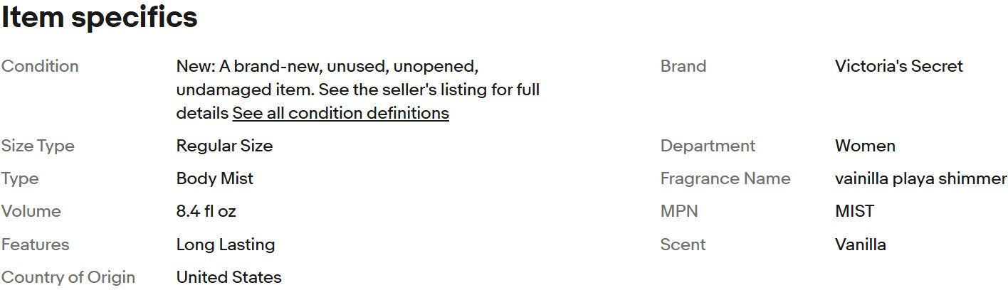 Victoria's Secret Shimmer Fragrance Mist, perfumed brume 250ml