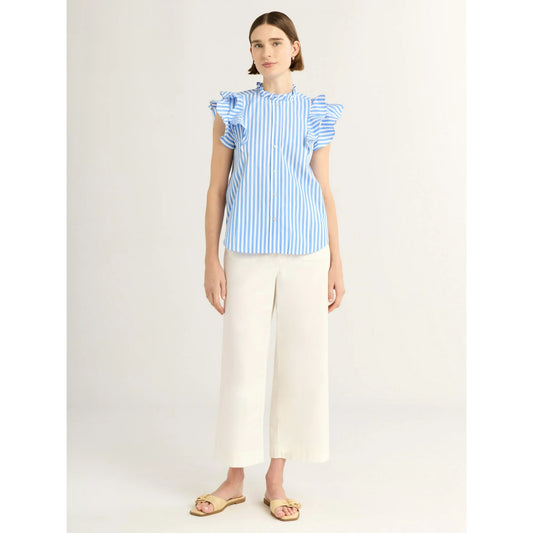 Camisa con volantes y botones delanteros para mujer, montaje gratuito