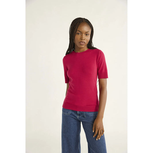 Camiseta de suéter encogido de hilo acogedor para mujer con mangas cortas, de ensamblaje gratuito