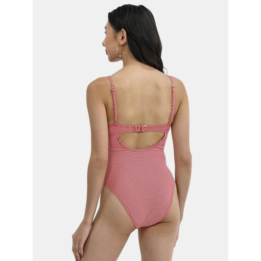 Traje de baño de una pieza de pierna alta con corte de jacquard para mujer