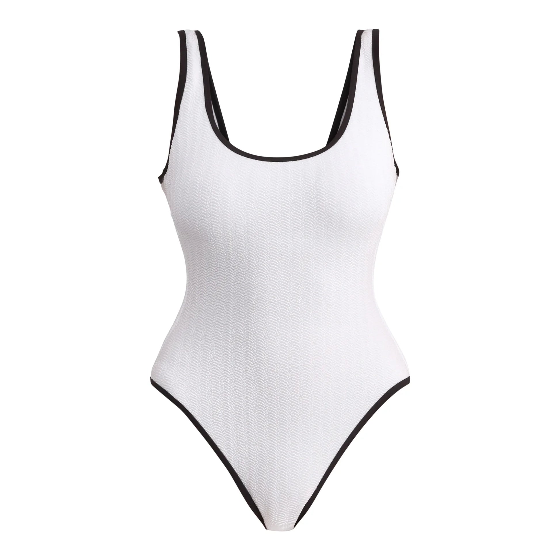 Traje de baño de una pieza con diseño de espiga y arrugado para mujer, blanco