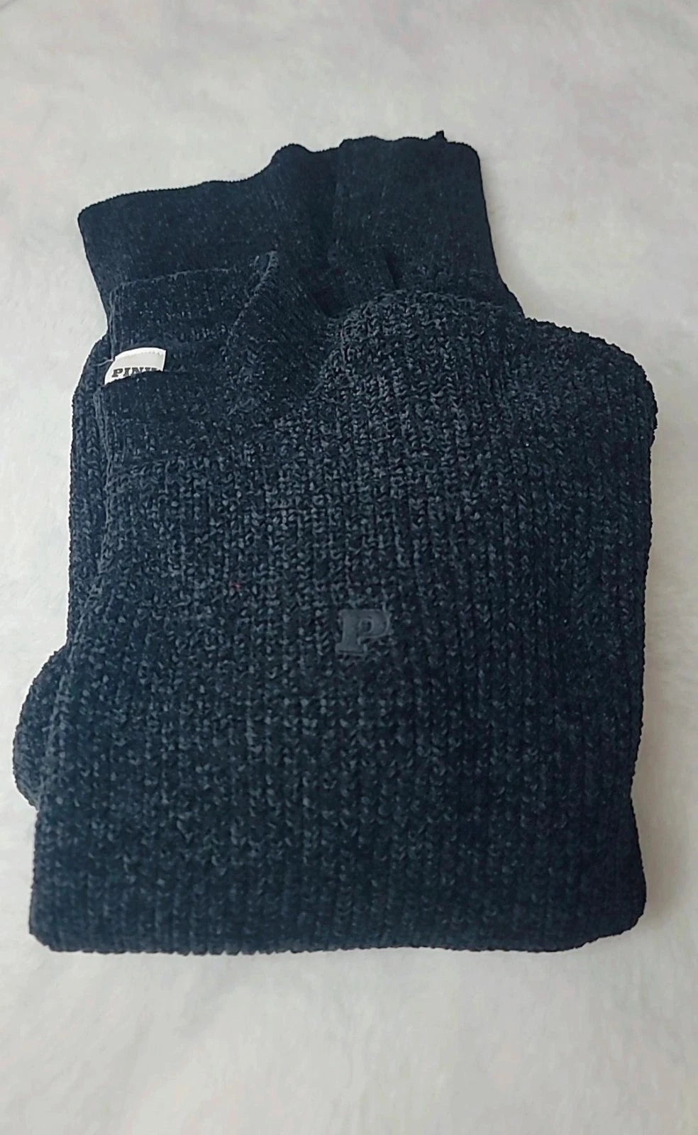 Suéter negro de chenilla extragrande rosa de Victoria's Secret para mujer