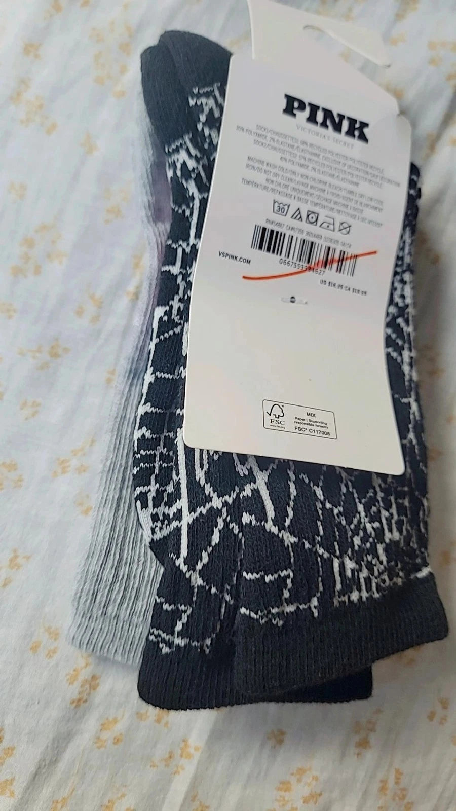 Get ready to spook up your sock drawer with this fun Victoria's Secret Pink Halloween 2-pack! Featuring festive designs with pumpkins, playful dogs, and spiderwebs, these crew socks bring seasonal cheer to your everyday style. Perfect for Halloween parties, costume coordination, or just adding a touch of holiday spirit to your outfit. Cozy, colorful, and totally on-theme—because your feet deserve to celebrate too!