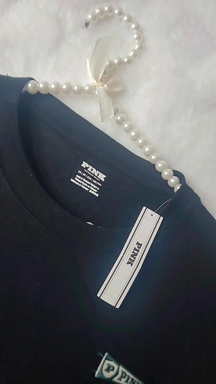 Victoria's Secret Pink Black T-Shirt, Campus Varsity Logo Black Tee