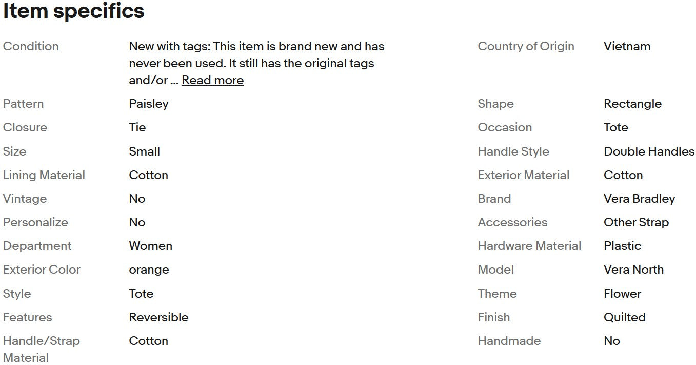 Vera BRADLEY, Bolsa pequena North South Tote, reversível