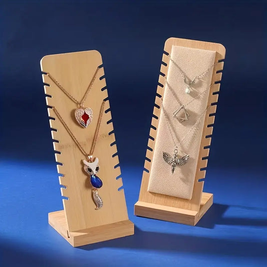 1 PC Suporte de exibição de colar destacável de madeira de bambu, suporte de exibição de corrente longa, placa de exibição de pulseira, suporte de joias