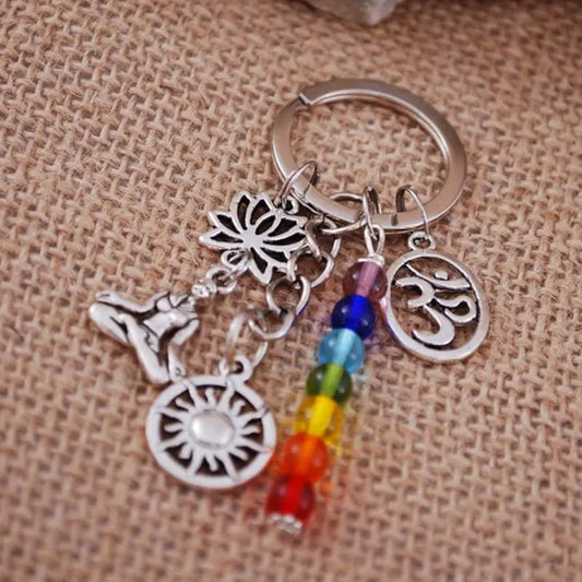Contas de arco-íris Yoga Chakra Chaveiro Hippie Chaveiro Anel Bolsa Mochila