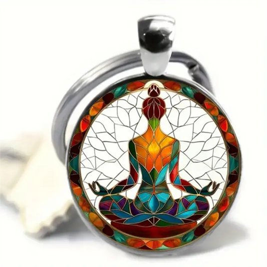 1 PC Vintage Liga de Zinco Yoga Meditação Chaveiro com Design de Chakra, Chaveiro Espiritual para Yoga