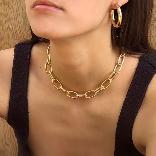 1 PC Colar de corrente chique em tom dourado requintado, joia elegante estilo vintage, perfeita para festa