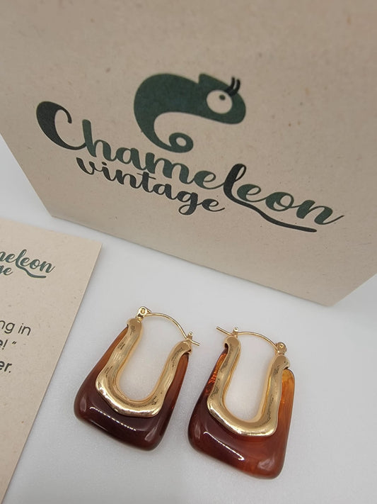 1 par de brincos de argola elegantes em forma de U, estilo vintage, design de brinco de fecho requintado de resina para um visual sofisticado