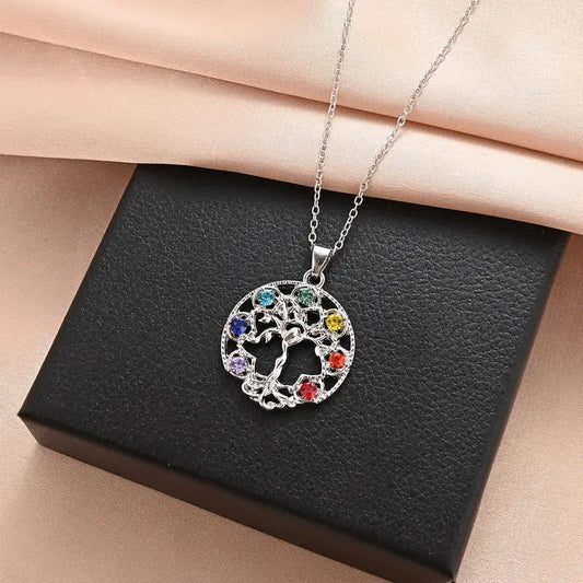 Pingente de Árvore da Vida com 7 Chakras Colar de Pedras de Cura de Chakras de Yoga