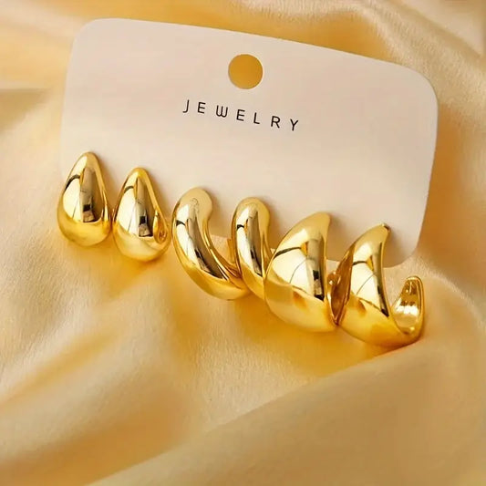 Conjunto de brincos de argola em forma de lágrima elegante e minimalista para mulheres, estilo punk retrô, adequado para uso diário