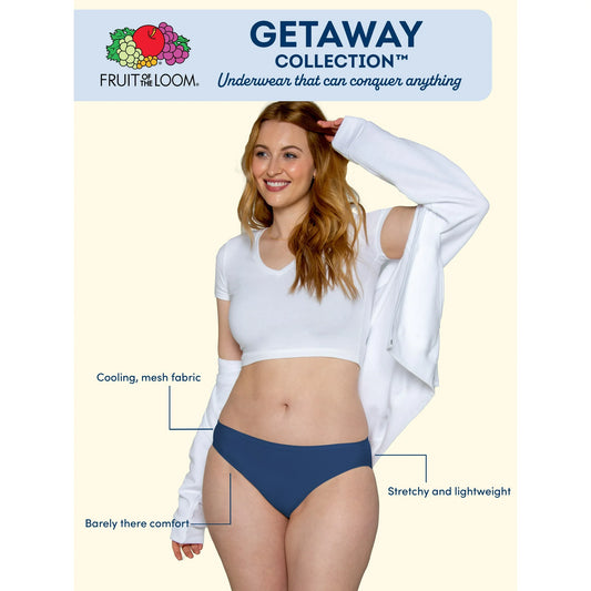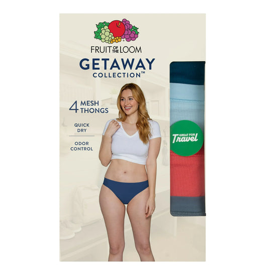 Coleção Getaway Feminina Fruit of the Loom, Calcinha Thong de Malha Refrescante