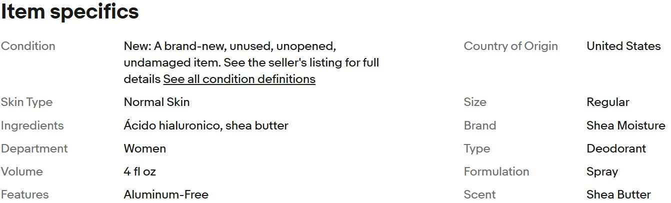 Mantenha-se fresca e fabulosa por três dias inteiros com este poderoso desodorante em spray da Shea Moisture. Enriquecido com manteiga de karité pura e nutritiva e ácido hialurônico hidratante, ele mantém o odor afastado enquanto proporciona à sua pele uma hidratação intensa. Sem químicos agressivos, apenas ingredientes naturais que trabalham tanto quanto você. Borrife, sorria e conquiste o seu dia — 72 horas de proteção nunca foram tão boas.