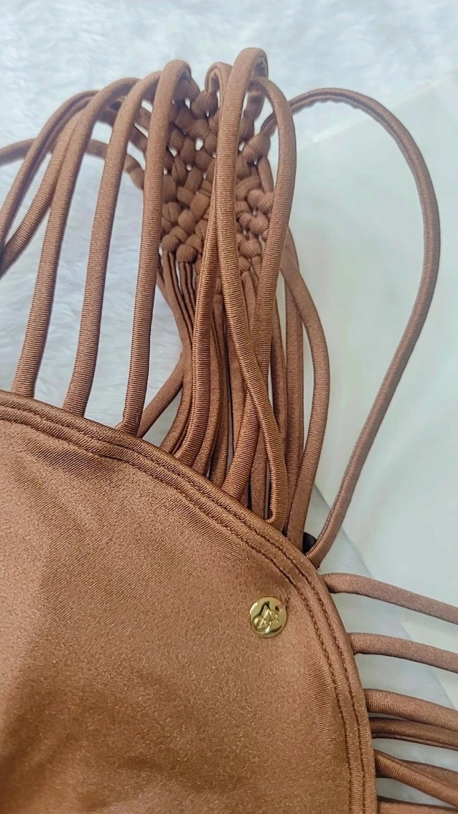 Maiô Victoria's Secret Archives com estampa em macramê, calcinha nova, cor marrom.