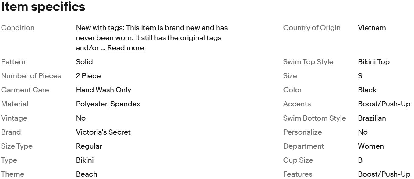 Biquíni feminino Victoria's Secret, top tamanho 34B e calcinha tamanho P, preto.